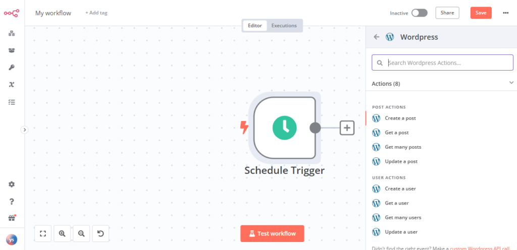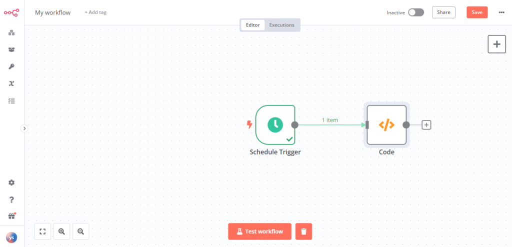 n8n のプログラミングはトリガーとアクションをノードで繋いでいくだけです!